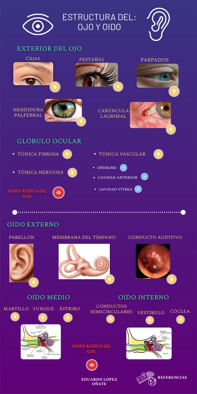 Castro, V.R. (s.f). L5. Anatomía del sistema visual. Universidad virtual del estado de Guanajuato. Castro, V.R. (s.f). L7. Anatomía de la audición. Universidad virtual del estado de Guanajuato.