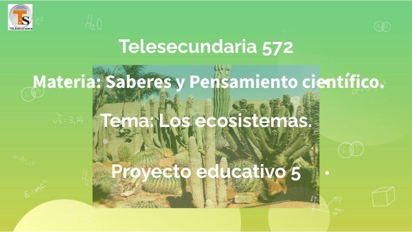Bienvenidos a su clase de Saberes y Pensamiento Científico, en esta ocasión trabajaremos el tema de los ecosistemas, porque parte de nuestro día a día se basa en convivir con los elementos que lo componen y en ocasiones no nos damos cuenta del daño o beneficio que le hacemos a estos y con ello al planeta, por lo tanto al hacerlo, nos lleva a ejemplificar y explicar al final del proyecto como estos factores que se llaman biótico y abióticos y los recursos naturales que están integrados en los ecosistemas, se pueden promover como sustentables para apoyar a las necesidades de los seres vivos actuales y para un futuro. Para ello, el curso tiene como propósito el que aprendas a identificar los diferentes tipos de ecosistemas que hay en el mundo, podrán reconocer sus características, identificarán como los factores bióticos y abióticos interactúan en los ecosistemas y a su vez que tipo de recursos naturales puede encontrar en ellos, para posteriormente integrarlos en una maqueta portatil.