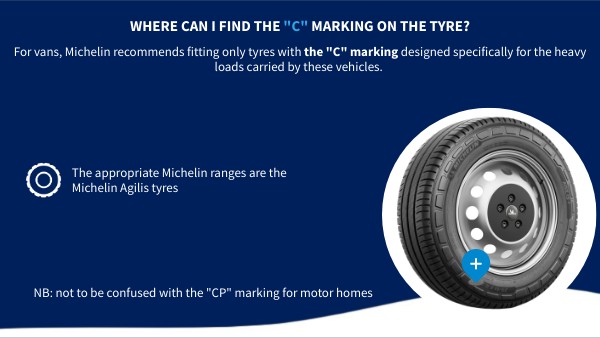 For vans, Michelin recommends fitting only tyres with the "C" marking designed specifically for the heavy loads carried by these vehicles.