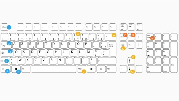7 - Touche Alt Gr : combinée à une autre touche, permet d'obtenir des caractères spéciaux.