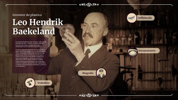 Leo Baekeland foi um químico belga-americano conhecido principalmente por sua invenção do primeiro plástico totalmente sintético, chamado Baquelite. Baquelite foi inventada em 1907 e é considerada a primeira resina termofixa sintética, o que significa que ela pode ser moldada e endurecida por meio de calor, permanecendo rígida depois de esfriar. Baekeland descobriu que a reação entre fenol e formaldeído sob alta temperatura e pressão resultava em uma substância sólida e resistente, que ele patenteou como Baquelite.
