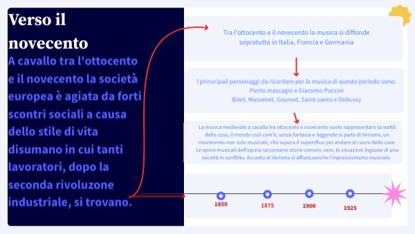 La musica medievale a cavallo tra ottocento e novecento vuole rappresentare la realtà delle cose, il mondo così com'è, senza fantasia e leggende:si parla di Verismo, un movimento non solo musicale, che supera il supersfluo per andare al cuore delle cose.Le opere musicali dell'epoca raccontano storie comuni, vere, le situazioni ingiuste di una società in conflitto. Accanto al Verismo si affiancaanche l'inpressionismo musivale.