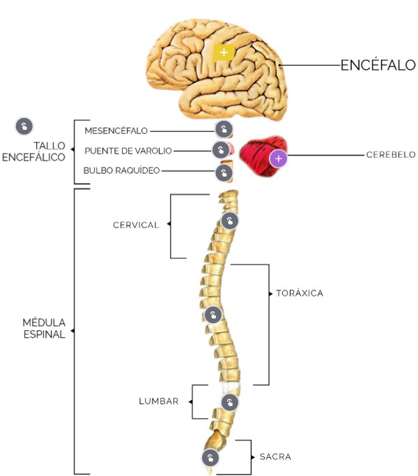 La médula espinal es la parte del sistema nervioso que transmite mensajes desde y hasta el cerebro. Se encuentra dentro de las vértebras, que son los discos óseos que forman la columna vertebral. Normalmente, las vértebras protegen la médula espinal.