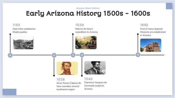In the years following the first expeditions to the southwest, the Spanish continued to explore and try to colonize the area. they brought cattle, horses, sheep adn new farming methods to the Indians. In 1692, the first of many Spanish missions was established in what is now Arizona.