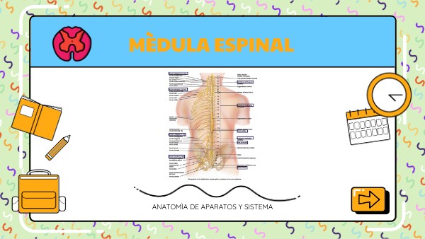 Características:Aplanamiento anteroposterior. Desde el bulbo raquídeo, hasta el borde superior de L2 Longitud de 42 a 45 cm Diámetro: 2cm.