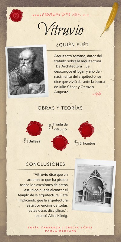 Arquitecto romano, autor del tratado sobre la arquitectura "De Architectura". Se desconoce el lugar y año de nacimiento del arquitecto, se dice que vivió durante la época de Julio César y Octavio Augusto.
