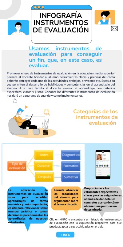 Clic en +INFO y encontrara un listado de instrumentos de evaluación con la explicación respectiva para que pueda adaptar a sus actividades en el aula.