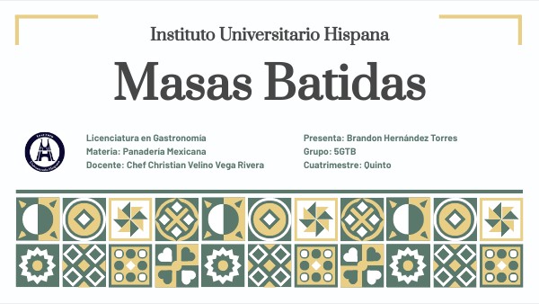 Licenciatura en Gastronomía Materia: Panadería Mexicana Docente: Chef Christian Velino Vega Rivera