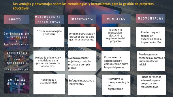 Las ventajas y desventajas sobre las metodologías y herramientas para la gestión de proyectos educativos