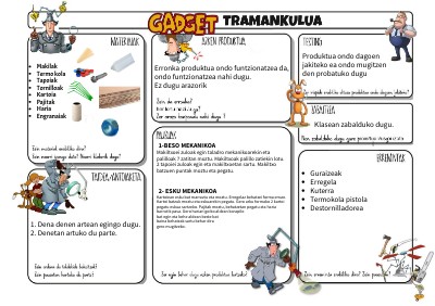 Makiltxoei zuloak egin taladro mekanikoarekin eta palilloak 7 zatitan moztu. Makiltxoak palillo zatiekin lotu. 2 tapoiei zuloak egin eta makiltxoetan sartu. Makiltxo batzuen puntak moztu eta pegatu.