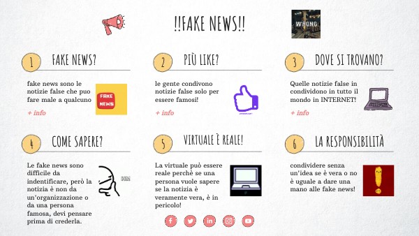 Le fake news sono difficile da indentificare, però la notizia è non da un'organizzazione o da una persona famosa, devi pensare prima di crederla.