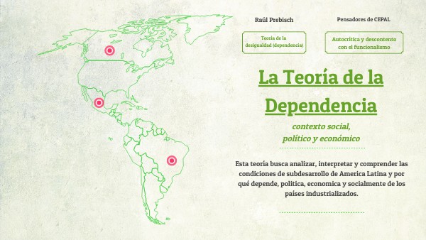 Esta teoría busca analizar, interpretar y comprender las condiciones de subdesarrollo de America Latina y por qué depende, politica, economica y socialmente de los países industrializados.