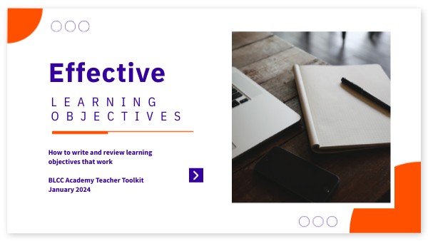 How to write and review learning objectives that work BLCC Academy Teacher Toolkit January 2024