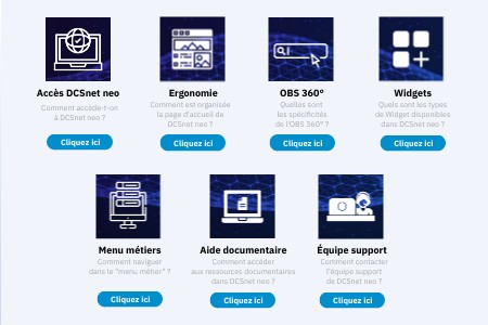 Les ressources documentaires de DCSnet neo sont disponibles dans : "Aide contextuelle" et "Centre d’aide" sous format PDF. Elles apportent une aide dans l’utilisation des fonctions du logiciel.