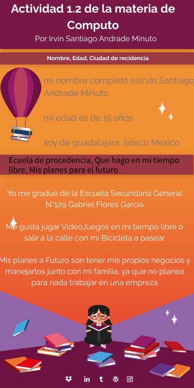 mi nombre completo esIrvin Santiago Andrade Minuto mi edad es de 15 años soy de guadalajara Jalisco Mexico