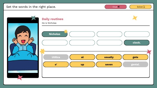 Nicholas usually gets up at seven o'clock.