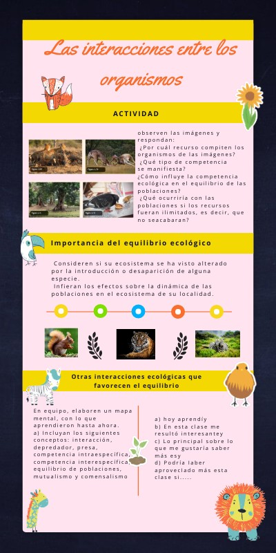 En equipo, elaboren un mapa mental, con lo que aprendieron hasta ahora. a) Incluyan los siguientes conceptos: interacción, depredador, presa, competencia intraespecífica, competencia interespecífica, equilibrio de poblaciones, mutualismo y comensalismo