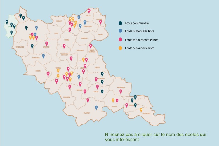 Carte écoles coopérantes Pôle libre Huy-Waremme