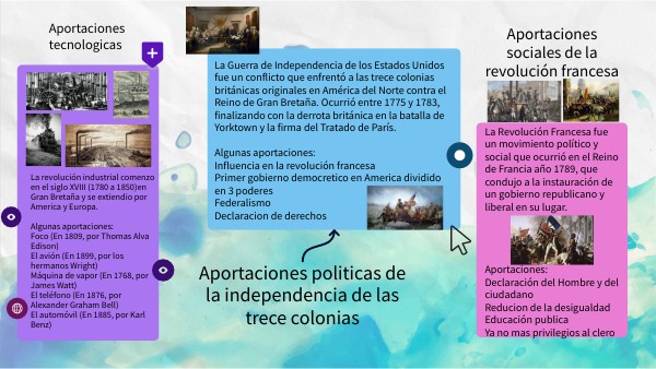 La revolución industrial comenzo en el siglo XVIII (1780 a 1850)en Gran Bretaña y se extiendio por America y Europa. Algunas aportaciones: Foco (En 1809, por Thomas Alva Edison) El avión (En 1899, por los hermanos Wright) Máquina de vapor (En 1768, por James Watt) El teléfono (En 1876, por Alexander Graham Bell) El automóvil (En 1885, por Karl Benz)