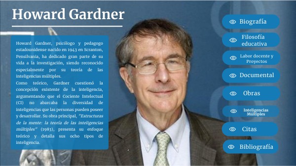 - Jonathan García-Allen. (2016, mayo 29). Howard Gardner: biografía del psicólogo estadounidense. Portal Psicología y Mente. https://psicologiaymente.com/biografias/howard-gardner
