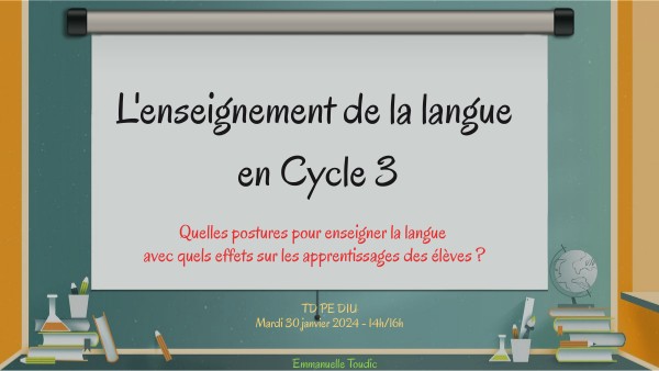 Préambule : "tour de table"1. Introduction : rappel des préconisations sur l'étude de la langue2. Du multiagenda de Dominique Bucheton et du jeu croisé des postures de l'enseignant et de l'élève aux postures d'étayage de l'enseignant en langue : quels gestes professionnels pour quels effets sur les apprentissages des élèves ?3. Echange de pratiques