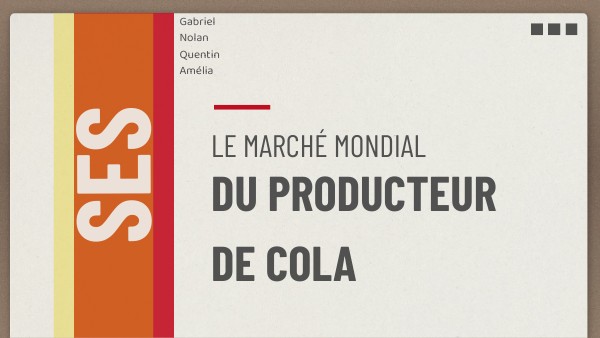 - CONCENTRATION DES PARTS DE MARCHÉ(marché dominé par Coca-Cola(40% de part de marché), Dr pepper (12%) et Pepsi(30% de part de marché)