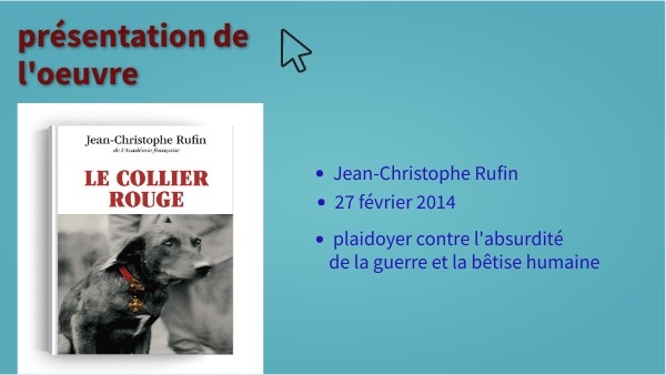 - L'oeuvre est particuliaire car l'un des personnage principale est un chien qui a suivis son maître pendant la guerre