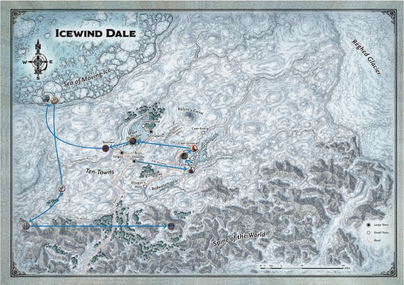 Dans la Mer de Glace, vous trouvez l'épave d'un ancien bâteau venant du Sud. Dans celui-ci se trouvent des Kobolds, chargés de garder l'un des trésors de la dragonne Aveyaturace. Le problème, c'est qu'un Troll des Glaces est là aussi, désireux de manger les Kobolds. Après avoir occis le Troll et "discuté" avec les Kobolds, Aveyaturace elle-même arrive, causant votre fuite en avant au travers d'un blizzard de toute évidence surnaturel. La créature ayant causé le blizzard (et vous ayant sauvé d'un triste sort au passage) n'est rien de moins que la légendaire Oyaminartok, une ours-garou souvent prise comme animal totem par les tribus goliaths de la région. Oya vous emmène dans un lieu sécurisé pour faire le point avec vous. Visiblement, elle est au courant de vos agissements dans les Dix-Cités, et semble posséder quelques informations sur ce qu'il se passe dans la région...