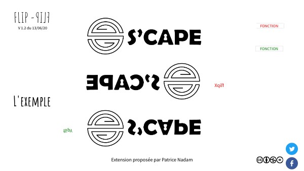 <div style="color:red">FONCTION flipX</div> <script> var x = document.querySelectorAll(".flipx"); for (var i=0;i< x.length;i++) { var objet=x[i].parentNode.parentNode.parentNode.parentNode.parentNode.parentNode.parentNode.parentNode; if (objet.getAttribute("id")==null) { objet=x[i].parentNode.parentNode.parentNode.parentNode.parentNode.parentNode.parentNode; } if (objet.getAttribute("id").search("genially-animated") ==0) { objet.style.transform = "scaleX(-1)"; } } </script>