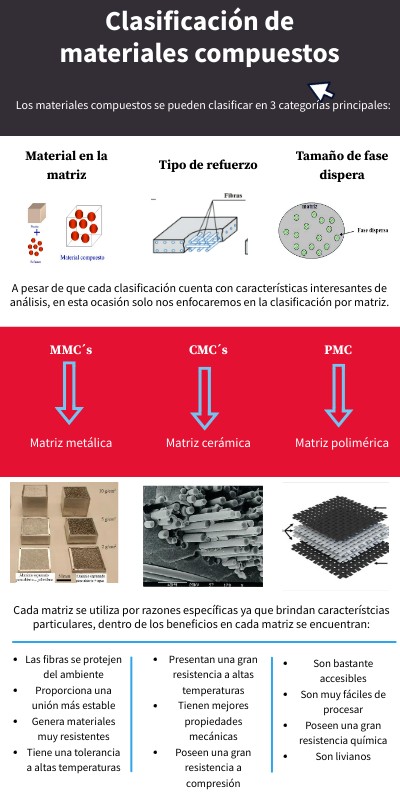 Los materiales compuestos se pueden clasificar en 3 categorías principales: