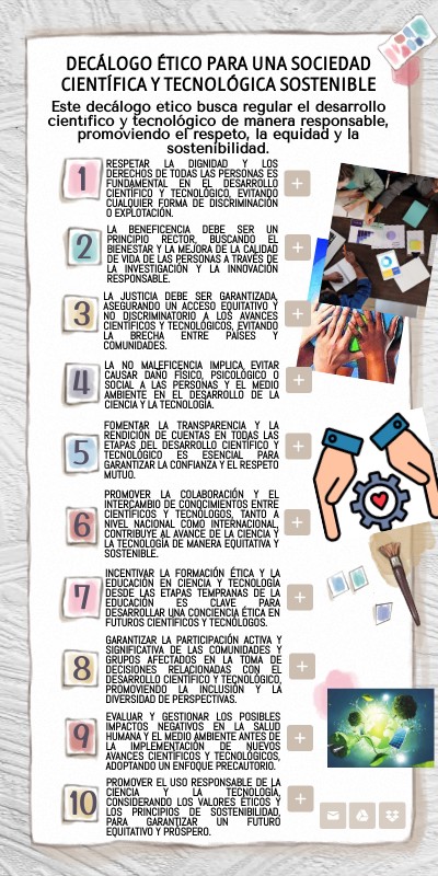 Este decálogo ético busca regular el desarrollo científico y tecnológico de manera responsable, promoviendo el respeto, la equidad y la sostenibilidad.