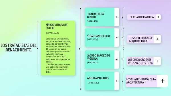 Vitruvio fue un arquitecto, escritor e ingeniero romano, conocido por escribir “De Arquitectura”, un tratado de 10 tomos, en los que se describen pautas y normas del estilo clásico de construción. Es el más antiguo de este tipo que se conoce. Su obra fue redescubierta y se usó como inspiración para el renacimiento en 1414.
