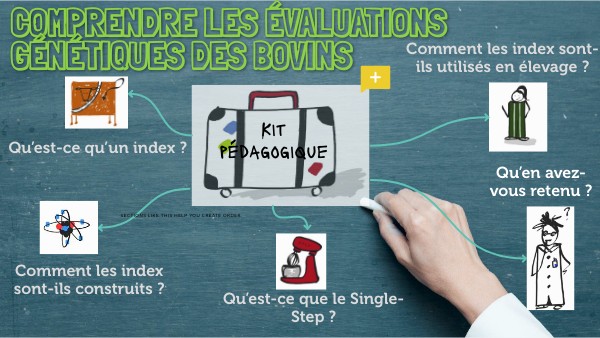 Bienvenue sur cet espace qui constitue le kit pédagogique, en libre accès pour les enseignants, lycéens, apprentis et étudiants. Accessible en ligne, les ressources qui le composent ont pour objectif d’accompagner les apprenants dans leur appropriation des évaluations génétiques des bovins et la façon dont elles sont utilisées en élevage pour la sélection et l’amélioration génétiques des troupeaux allaitants et laitiers.