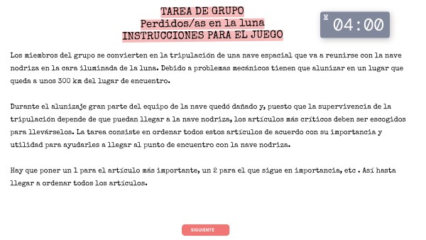 TAREA DE GRUPO Perdidos/as en la luna INSTRUCCIONES PARA EL JUEGO