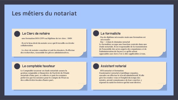 - une formation DSN/CFPN ou Diplôme de 1er clerc / DMN - Il est le bras droit du notaire avec qui il travaille en étroite collaboration - Le clerc de notaire constitue et suit les dossiers. Il effectue des recherches, rassemble les pièces administratives.