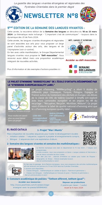 La gazette des langues vivantes étrangères et régionales des Pyrénées-Orientales dans le premier degré