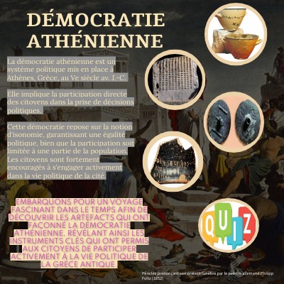 Embarquons pour un voyage fascinant dans le temps afin de découvrir les artefacts qui ont façonné la démocratie athénienne, révélant ainsi les instruments clés qui ont permis aux citoyens de participer activement à la vie politique de la Grèce antique.