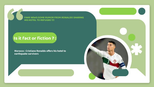 On the night of September 8 to 9, a terrible earthquake struck Morocco, causing around 3,000 human losses and almost twice as many injuries. Following this, and as is customary, the media around the world naturally covered this odious news. The extent of the damage caused is such that hundreds of different pieces of information exist and proliferate on this subject. Among this news, one of the articles had particularly been talked about in recent days.After, this event there were some rumors that Ronaldo had shared his luxury hotel as a hospital on twitter . But if we search a bit we find out than it’s just fake news that was shared by some people and pseudo media . So we’ re going to debunk this fake news with a basic argumentation.