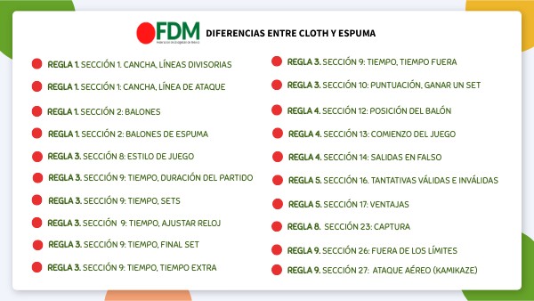 Sección 2: Balones 2.1 Balones Se juega con 6 Balones, cuando se utiliza el formato de juego de espuma. Se juega con 5 Balones, cuando se utiliza el formato de juego de tela (cloth).