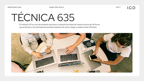 El método 635 es una herramienta que busca compartir las ideas de manera escrita de tal forma que el tiempo y los participantes puedan inspirarse de otros y llegar a realizar hasta 108 ideas