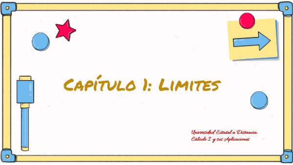 En este capítulo se explora las conceptos básicos de límites, así como la resolución de ejercicios. Se recomienda resolver las actividades en forma semanal y anotar las dudas que se tengan al respecto, para luego despejarlas en la Tutoría o por medio de los canales de comunicación del aula virtual.