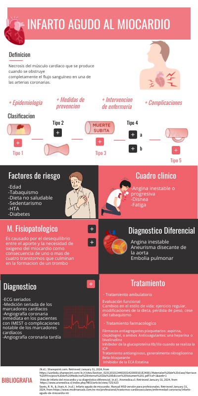 Sweis, R. N., & Jivan, A. (n.d.). Infarto agudo de miocardio. Manual MSD versión para profesionales. Retrieved January 31, 2024, from https://www.msdmanuals.com/es-mx/professional/trastornos-cardiovasculares/enfermedad-coronaria/infarto-agudo-de-miocardio-im