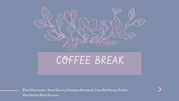 In this presentation we will talk about the Coffee break ; we will also talk about both sweet and savory accompaniments.