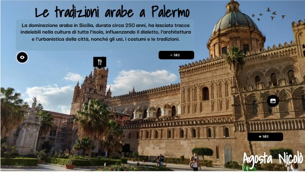 La dominazione araba lasciò profonde tracce nella cultura e nell'architettura di Palermo, con edifici particolari e caratteristici. Molto interessanti sono i mosaici che ritroviamo nella Cattedrale. Molti edifici di culto nati come moschee furono in seguito trasformati in chiese, come la chiesa della Magione che presenta ancora i resti di una torre araba. Altre strutture furono costruite in pieno stile arabo, ad esempio il Castello della Zisa, al cui interno si ammira anche una collezione di arte islamica.