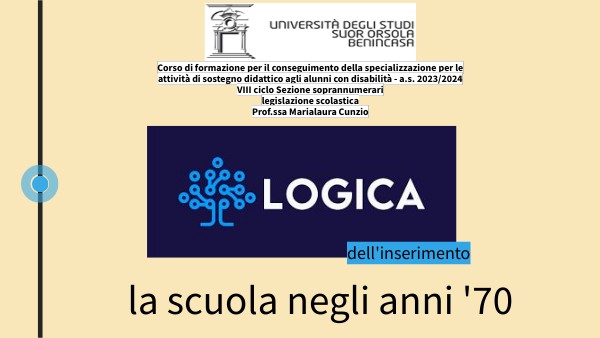 Gli anni 70 hanno segnato un cambiamento epocale nella storia della scuola italiana e dei servizi educativi della prima infanzia e non solo. In quell’anno infatti il nostro parlamento approvò provvedimenti ancora oggi di fondamentale importanza: la legge 1044 riguardante gli asili nido, la legge 820 istitutiva del tempo pieno nella scuola elementare, la legge 118 che avviò il processo dell’inserimento scolastico degli alunni “handicappati” nelle classi comuni, indicando una strada mai sperimentata in nessun altro Stato, passando per la commissione Falcucci e l'importante documento che ne derivò fino alla legge517. In questo viaggio nella storia della legislazione ci occuperemo di questo profondo cambiamento.