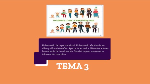 En el presente tema abordaremos el desarrollo de la personalidad y como este está influenciado no solo por factores genéticos sino también por la influencia que en su modelado juegan socialización y educación. El desarrollo afectivo es determinante y juega un papel importante en la construcción de la personalidad.