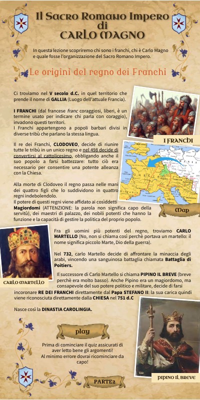 In questa lezione scopriremo chi sono i franchi, chi è Carlo Magno e quale fosse l'organizzazione del Sacro Romano Impero.