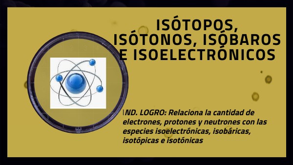 IND. LOGRO: Relaciona la cantidad de electrones, protones y neutrones con las especies isoelectrónicas, isobáricas, isotópicas e isotónicas