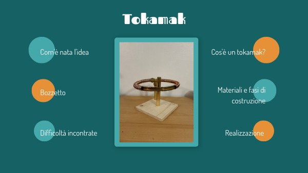 Affianco è rappresentato il bozzetto ufficiale del progetto con annessa immagine di una rappresentazione artistica di un tokamak da cui abbiamo preso spunto.