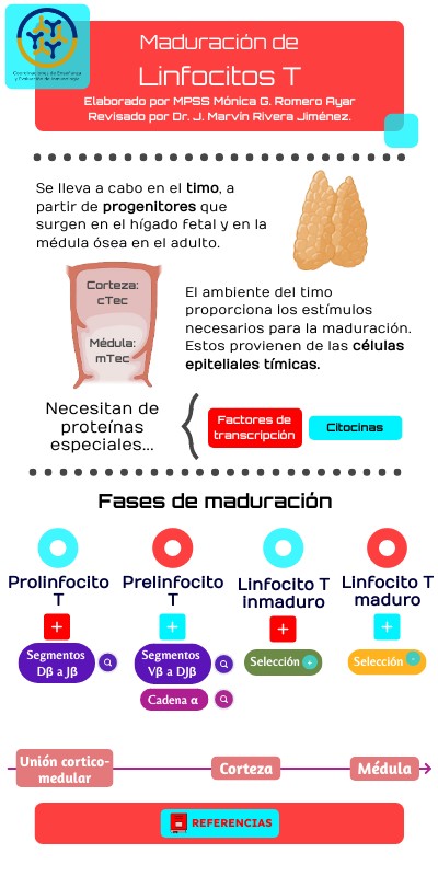 - Punt J., Stranford S.A., Jones P.P., & Owen J.A. (2020) Desarrollo de las células T. En Kuby. Inmunología (pp. 293-320). México, McGraw Hill.